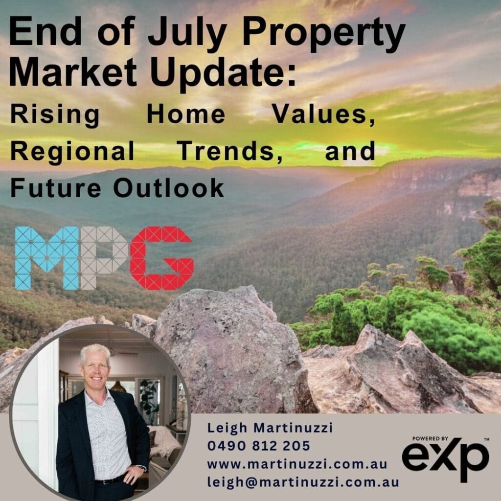 End of July Property Market Update: Rising Home Values, Regional Trends, and Future Outlook Weekly Real Estate Market Update with Leigh Martinuzzi MPG As we move through mid-2024, the Australian property market continues to display intriguing trends. National home values rose by 0.5% in July, marking 18 consecutive months of growth. The Home Value Index […]