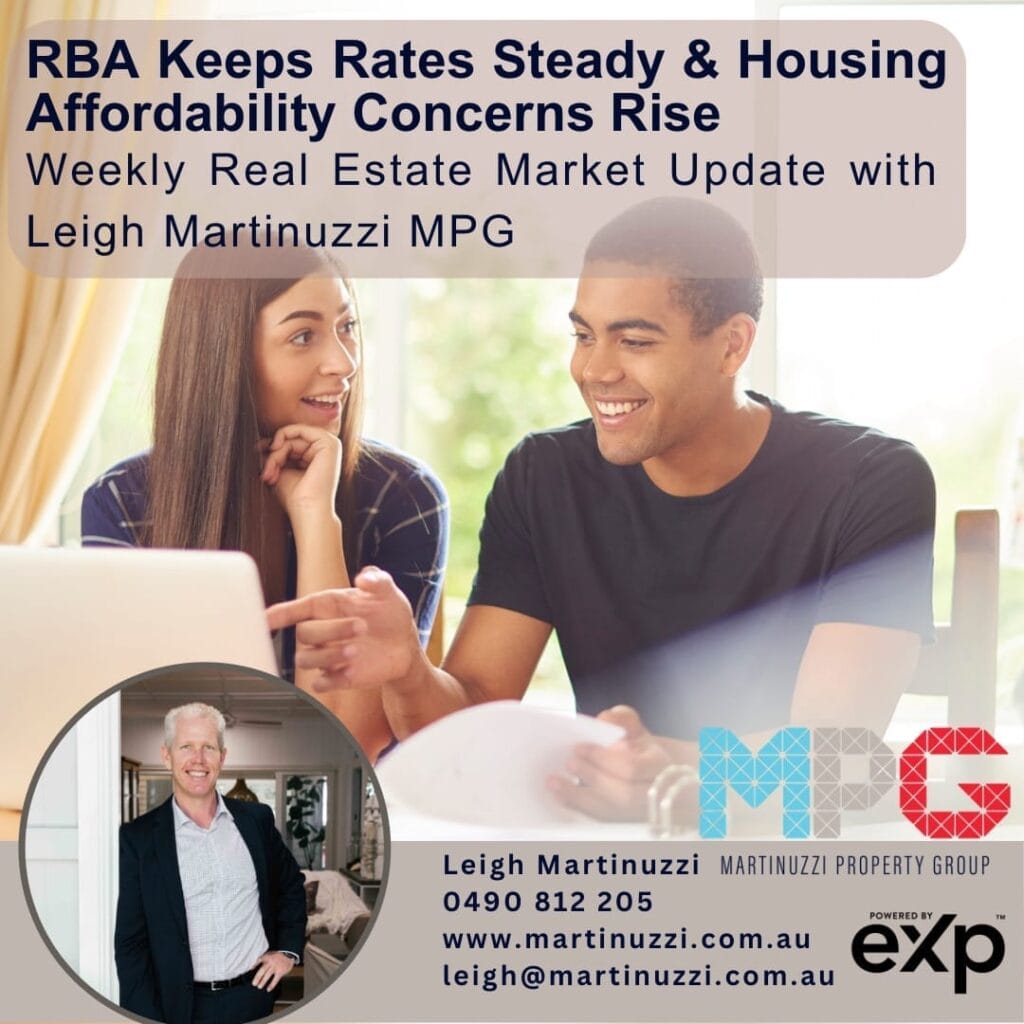 RBA Keeps Rates Steady & Housing Affordability Concerns Rise Weekly Real Estate Market Update with Leigh Martinuzzi MPG In last week’s RBA meeting, the decision to keep the cash rate unchanged at 4.35% came as no surprise. The Board highlighted that while inflationary pressures are easing, underlying inflation remains a concern. They’d like to bring […]