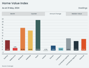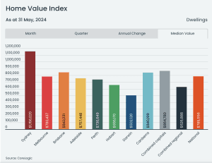 Brisbane has overtaken Canberra as the second most expensive city in Australia, trailing only Sydney. This ranking is based on the median house prices in our capital cities. In January, Brisbane surpassed the median house price in Melbourne, and now it has also now outpaced Canberra. According to CoreLogic, Brisbane’s current median house price is $937,479, which is $190 above the Melbourne median. One reason for this difference is the prevalence of unit sales in Melbourne, which are more common and can skew the overall median dwelling price.